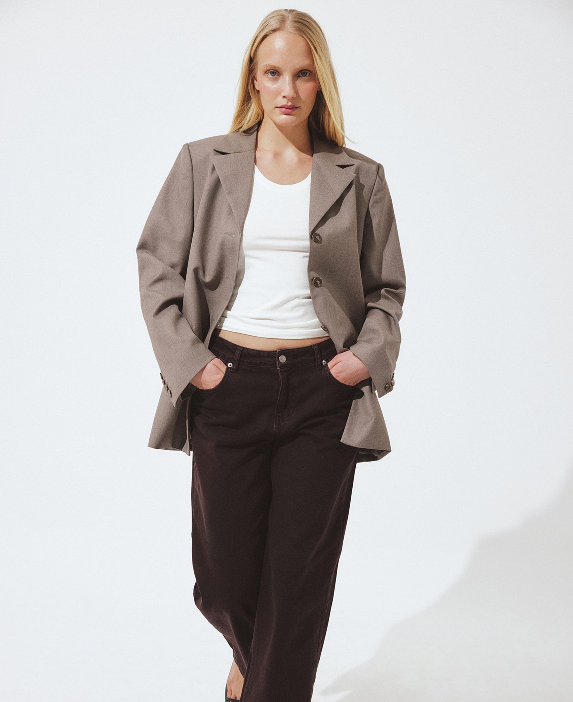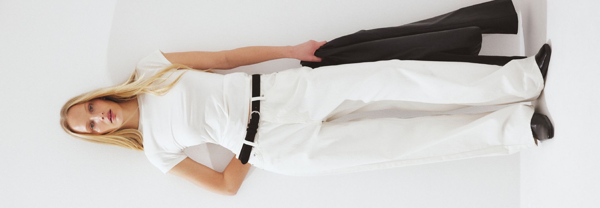 Setze auf das Oversized Heavy T-Shirt oder das Boat Neck Long Sleeve Top, kombiniert mit maßgeschneiderten Hosen und spitzen Flats. Eine neutrale Farbpalette sorgt für einen modernen, editoralen Look.