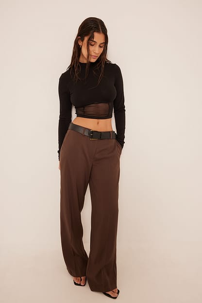 Dieses Oberteil hat einen Rollkragen, lange Ärmel, eine abgeschnittene Länge und Mesh-Details auf der Vorderseite. Dieses Oberteil ist erhältlich in schwarz.