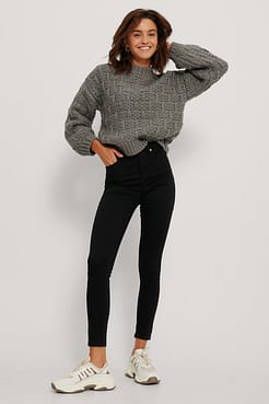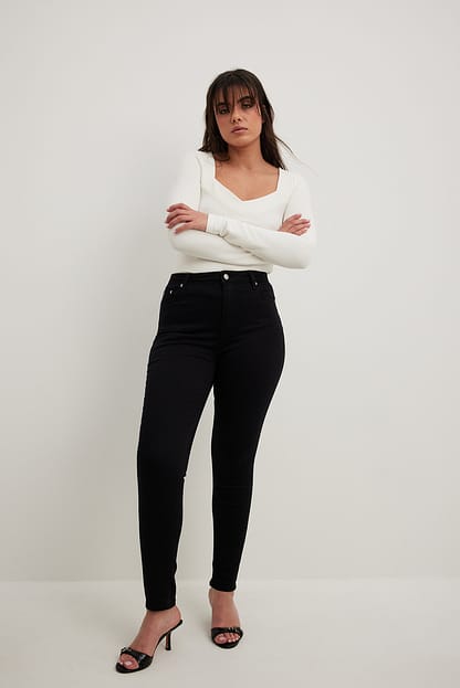 Skinny jeans med stretch og høj talje