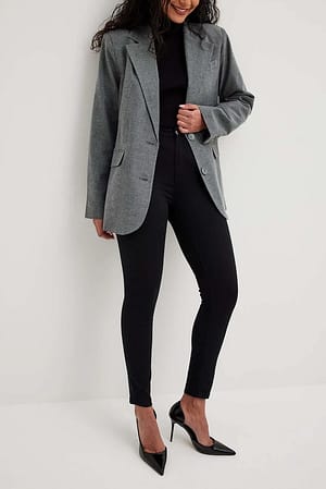 Black skinny or slim-fit jeans also dress up nicely for work. The classy combo of a shirt or blouse, blazer and high heels create an instant office-to-evening-out outfit. Add some chunky jewellery and swap your work bag for your favourite clutch.