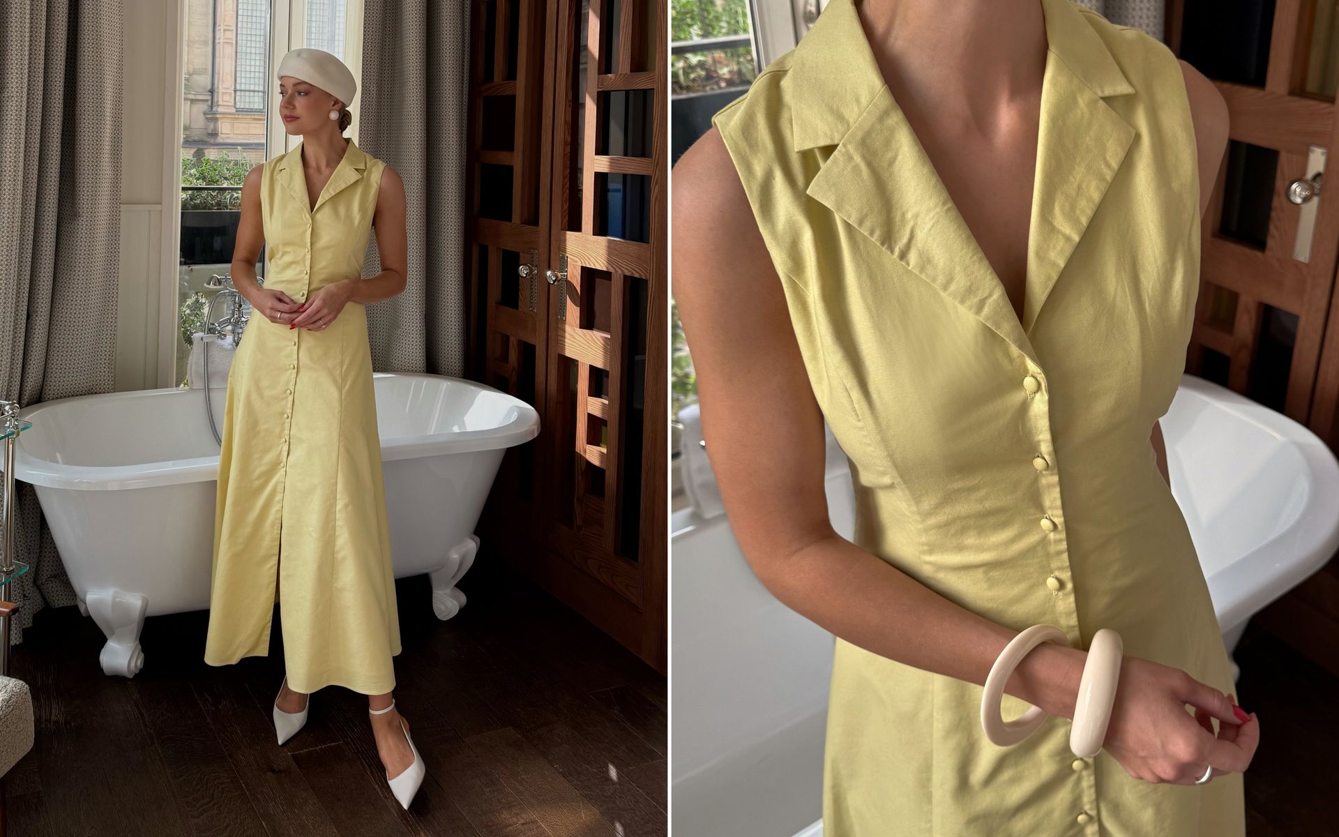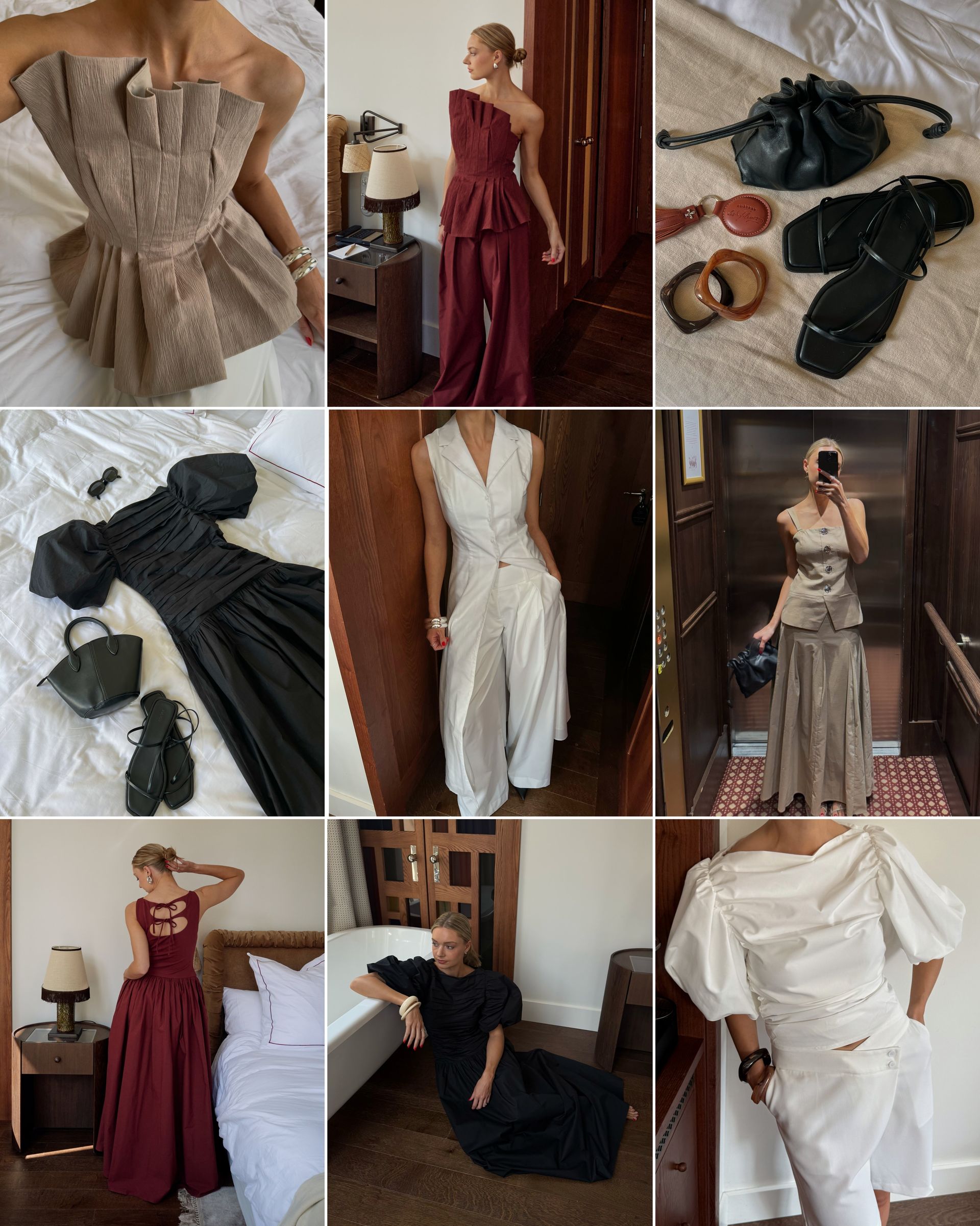 The edit blends bold tailoring and soft fluidity. From structured strapless tops and pleated boat neck dresses to tailored red trousers, every piece is crafted to feel empowering yet wearable. “I love that we’ve taken everyday items like white shorts and black trousers and added a twist with asymmetric detail,” Lydia says.Shot in Paris’s Château des Fleurs, the setting echoes the palette: creamy butter yellow, deep burgundy, and camel. “Each piece feels like me — and they’ll suit so many people,” Lydia notes. “They’re still very wearable, but have that point of interest that draws the eye in.”