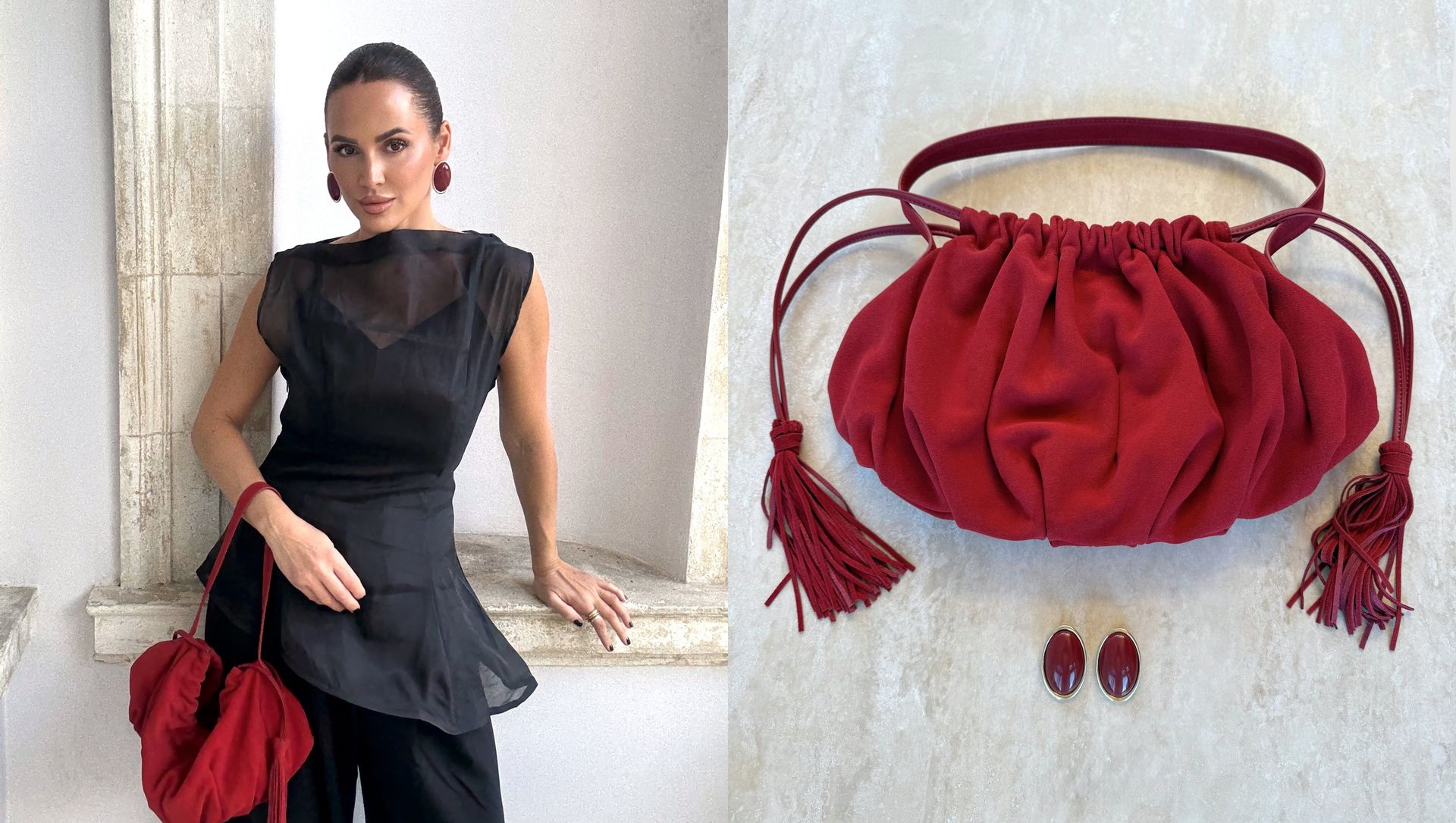 Black and cream plays a central role. It’s sleek, confident, and timeless - while deep reds and sheer textures add warmth and emotion. Organza emerges as a key material, offering lightness and versatility. Styled casually or dressed up for the evening, these pieces reflect Pelin’s belief in clothing that adapts to real life. The silhouettes are clean, the details subtle, and the feeling unmistakably romantic without being obvious.