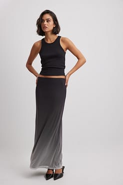 Ce débardeur est élastique et a un col arrondi. Il a des bretelles fines et une matière à nervures en coton biologique. Ce débardeur est disponible en noir.