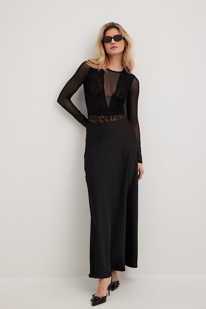 Gerecycleerd kanten body met mesh-mouwen