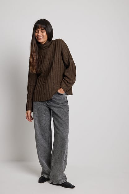 Oversized ribbestrikket genser med turtleneck