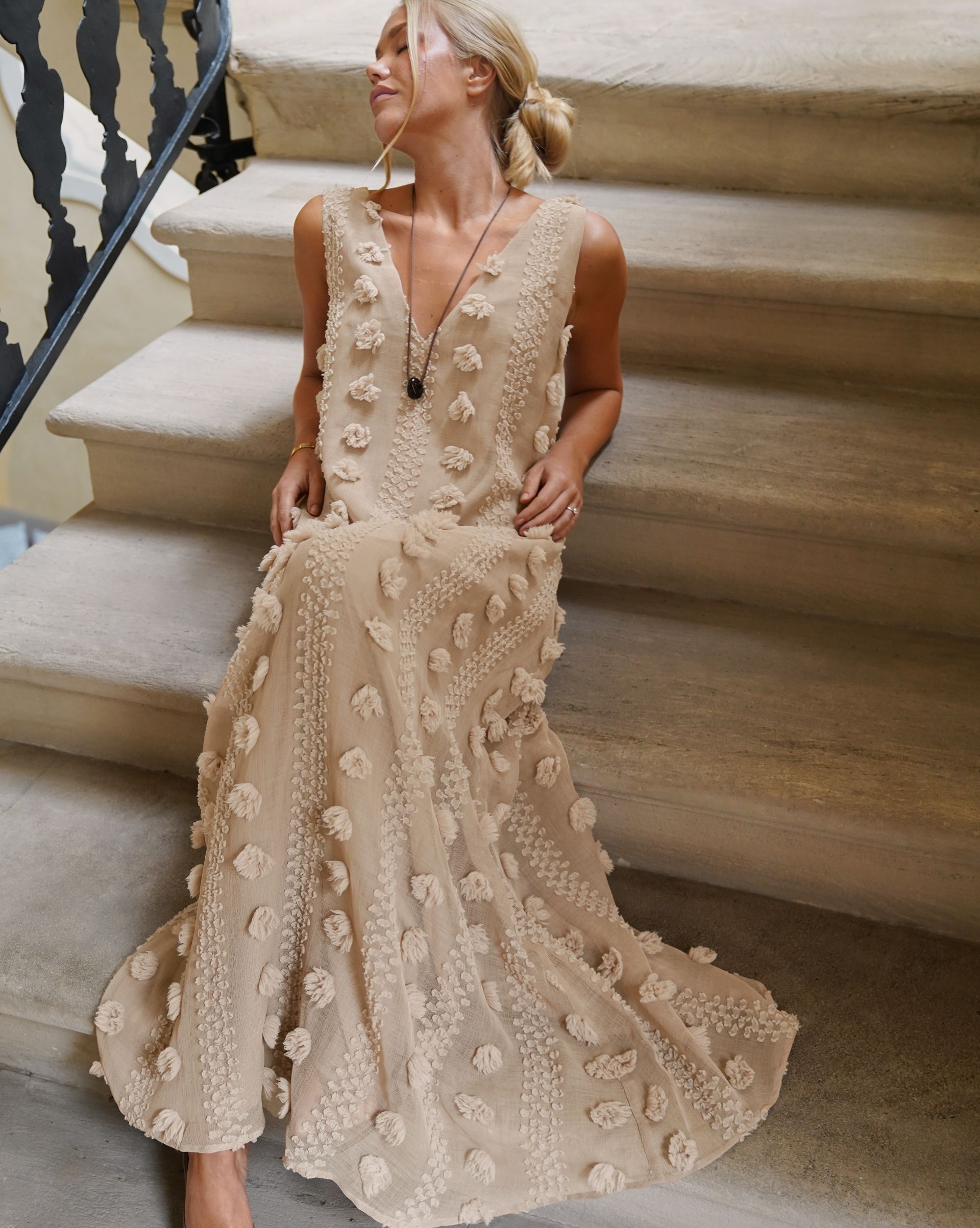 Detta speglas i hennes preferens för rena linjer och mångsidiga basplagg – med andra ord plagg du kan återvända till om och om igen. Tänk upphöjda basplagg som flödande maxiklänningar och avslappnade linnebyxor som enkelt rör sig mellan olika tillfällen.